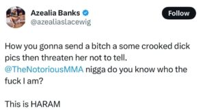 В июле 2025 года Banks опубликовала откровенные скриншоты интимного характера, которые якобы были присланы ей без согласия Конором Макгрегором. Она назвала это сексуальным домогательством. В дополнение к музыке Azealia ведет подкаст, занимается косметикой и общественной деятельностью по политическим вопросам.